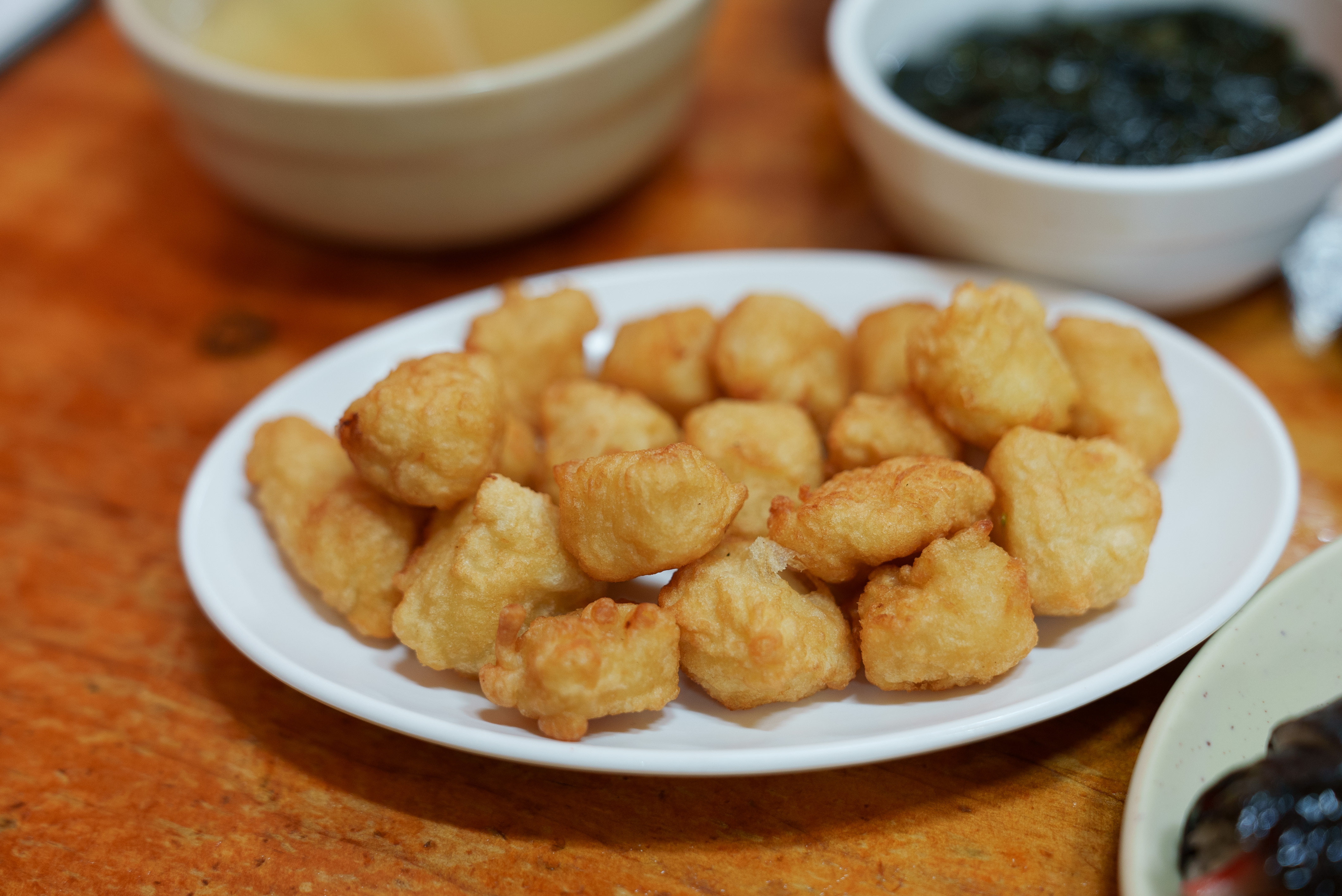 튀김의 느끼한 맛을 상추의 쌉쌉한 맛으로 잡아주는 것이 딱 별미네요.